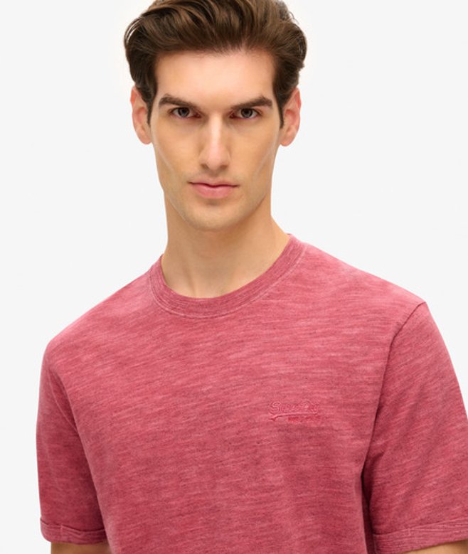 Losse pasvorm - de stijlvolle losse pasvorm maakt dit tot een must-have waarin comfortabel en cool samenkomen Ronde hals en korte mouwen met een omgeslagen boord Kenmerkende geborduurde tekst op de borst en een label op de zoom Ons overdyed gemêleerd T-shirt met slub-effect is een verfijnde basic voor elke dag en de perfecte aanvulling op je garderobe.