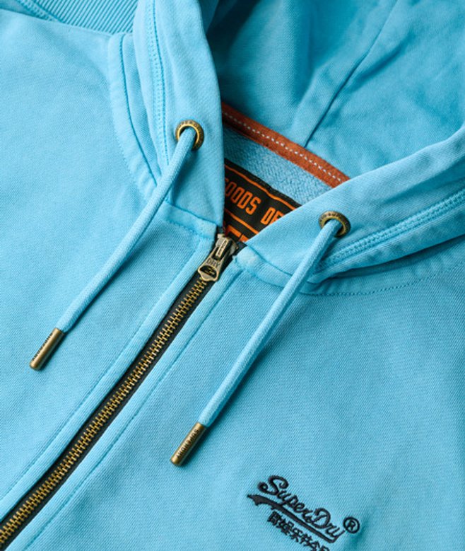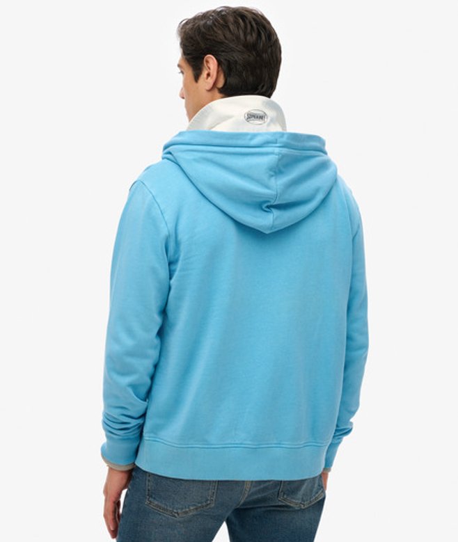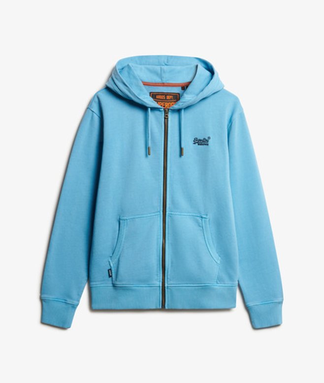 Superdry Essential Logo Washed Hoodie met Rits Light Blue