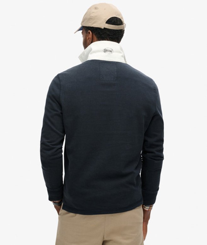 Kies je gebruikelijke maat Rugbykraag met drie knopen Lange mouwen Geribde manchetten Zijboord met split Geborduurd Superdry-logo Kenmerkend Superdry-label