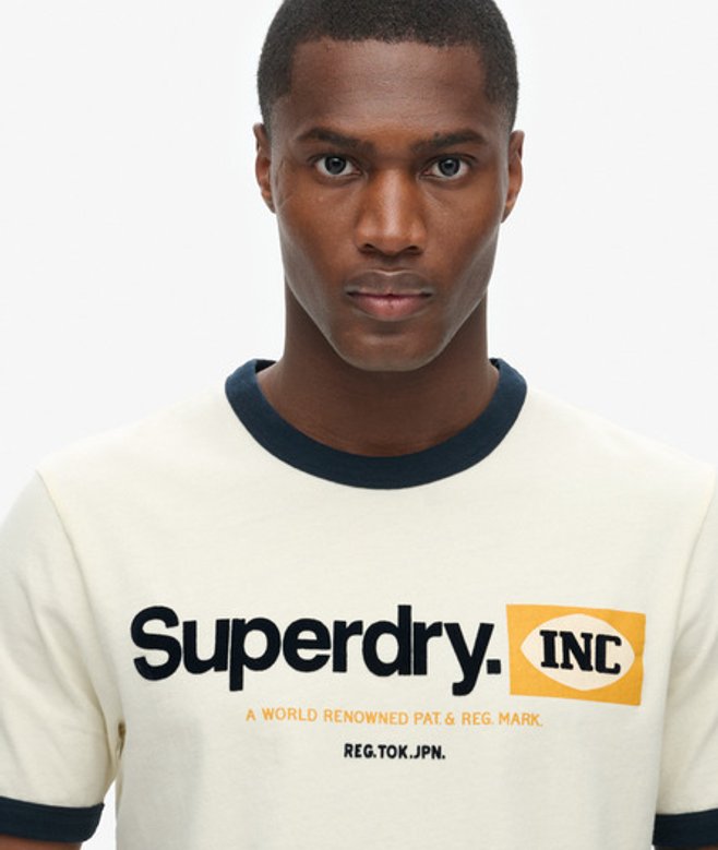 Superdry Workwear T-shirt met Core-logo en Contrasterende Bies Crème | ricciano NEDERLAND