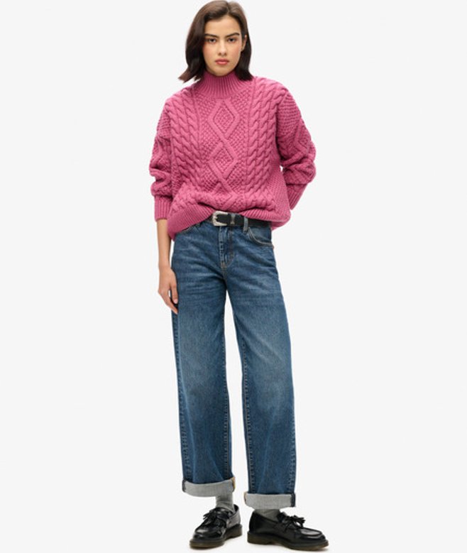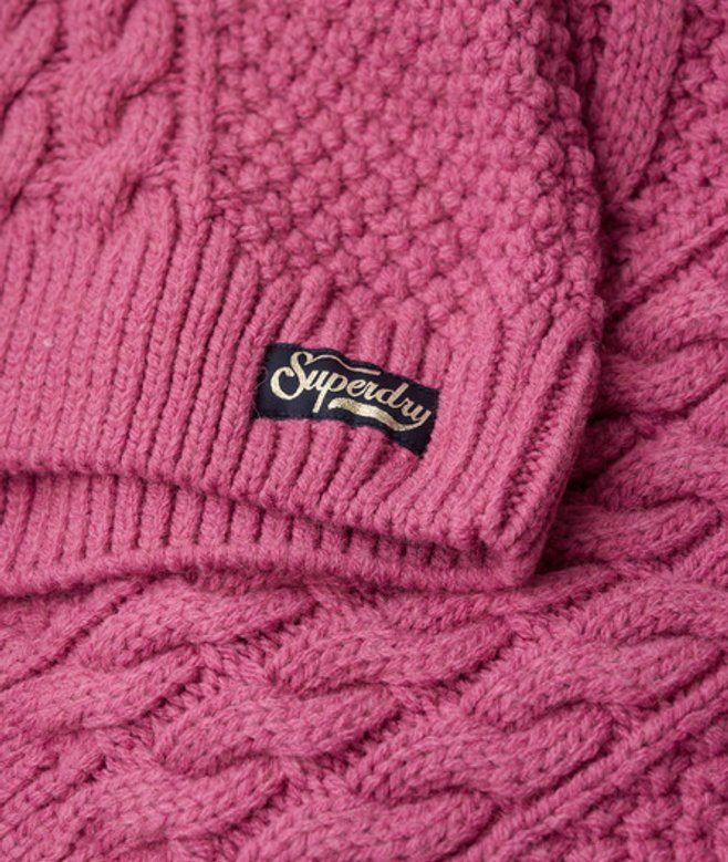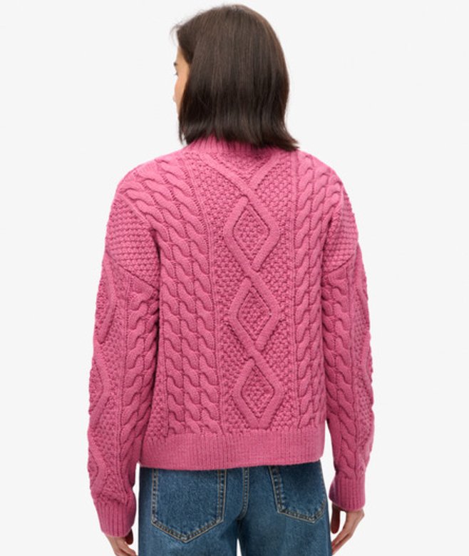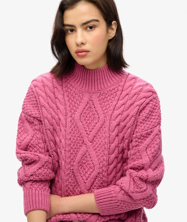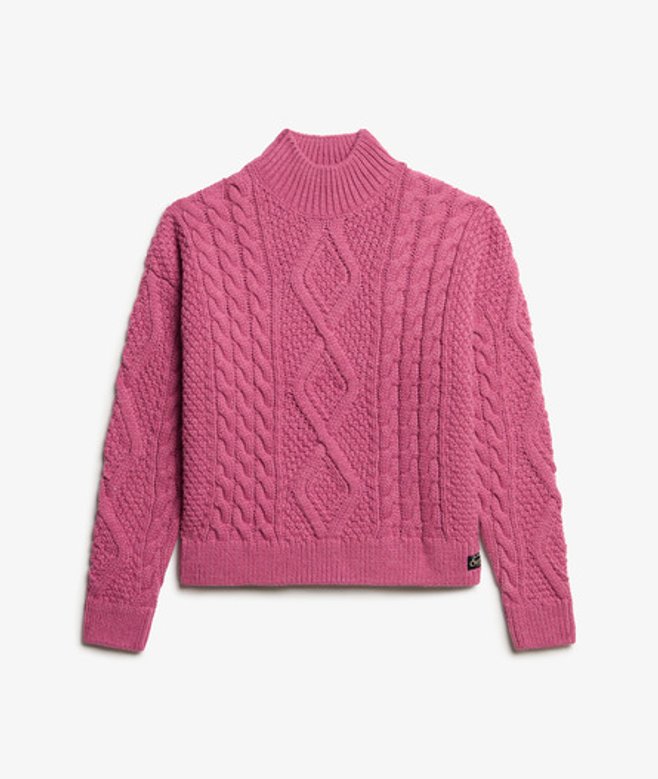 Superdry Gebreide Aran Kabeltrui met Polokraag Roze | ricciano NEDERLAND