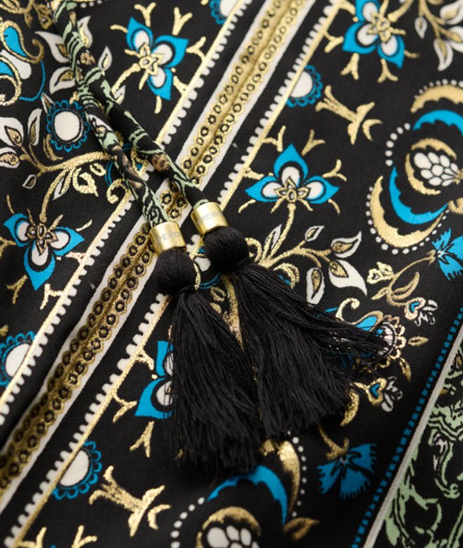 Hij heeft een prachtige botanische print en is versierd met metallic details voor een chique touch.