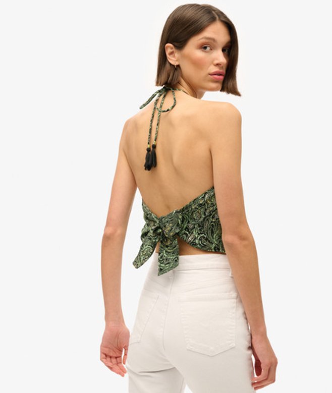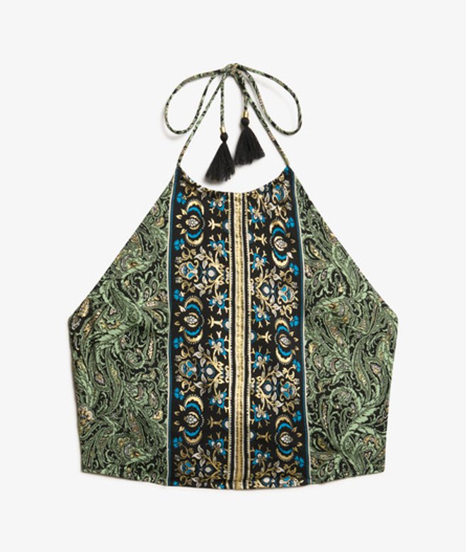 Tropez-haltertop met paisleyprint zit vol boho-vibes met een vleugje luxe.