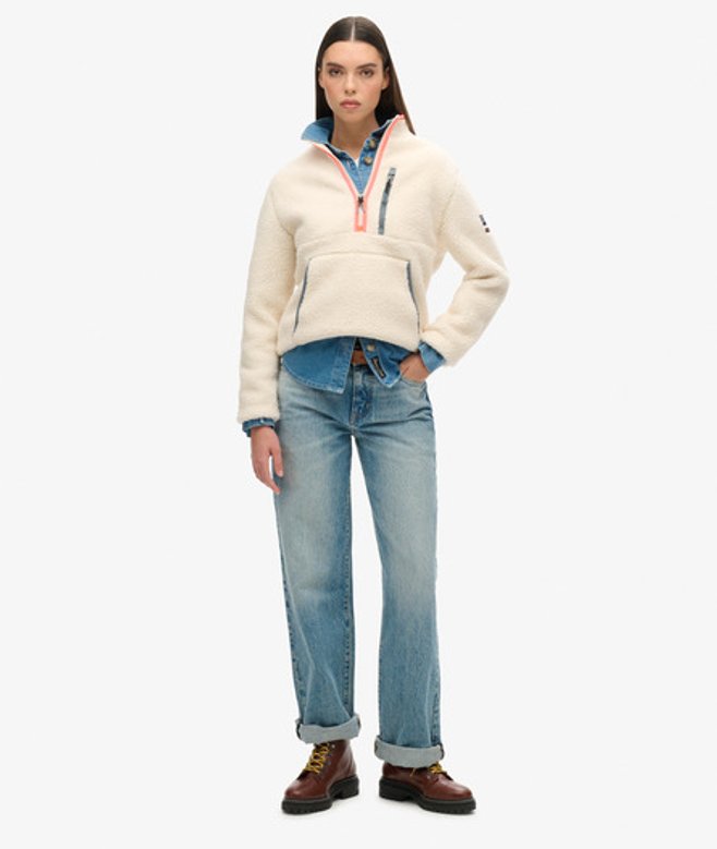 Slimfit - de nauw aansluitende pasvorm zorgt voor een getailleerd figuur Ontwerp met halve rits en hoge kraag Grote buidelzak en borstzak aan de voorkant Volledig gevoerd in de body Superdry-patch op de mouw De Outdoor-fleece met halve rits biedt een onweerstaanbare laag extra comfort en is zo ontworpen dat hij niet alleen warm, maar ook stijlvol is.