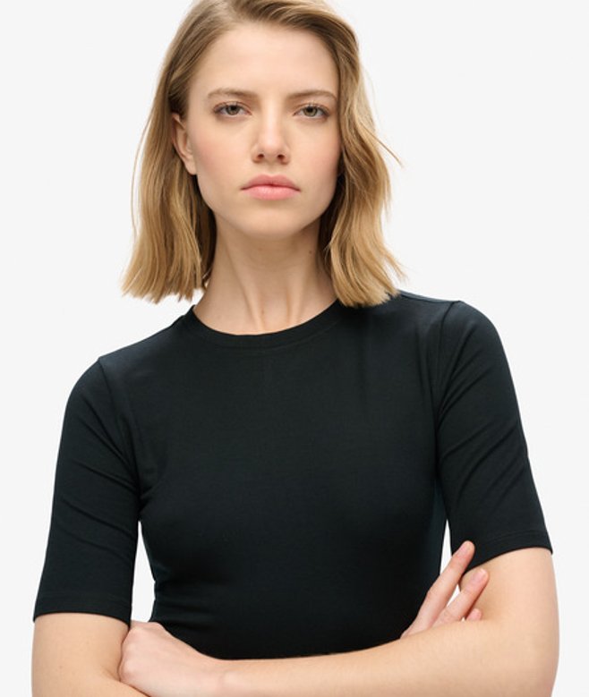 Slimfit - de nauw aansluitende pasvorm zorgt voor een getailleerd silhouet Halflang UK10 schouder tot zoom: 120 cm Korte mouwen Ronde hals Gesplitste naad aan de achterkant
