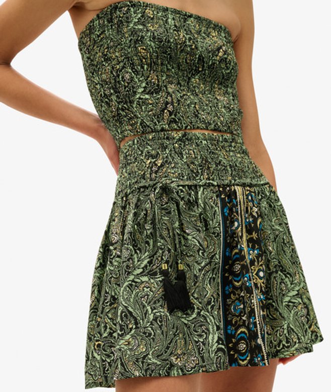 Tropez-minirok met paisleyprint, een chique nieuwe versie van een iconische stijl.