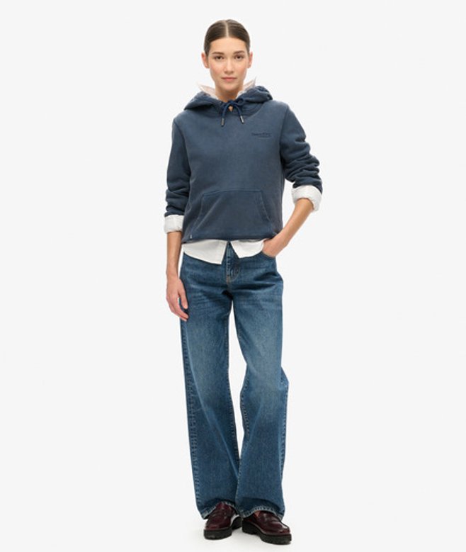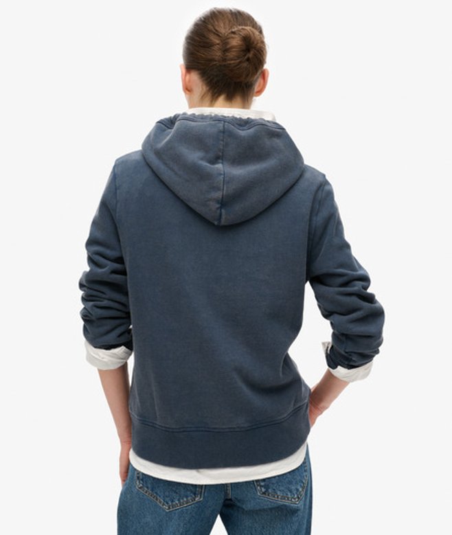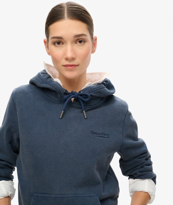 Onze Essential-hoodie met logo en halfgeborstelde voering is afgewerkt met een prachtige stonewash voor de perfecte vintage look waar we allemaal van houden.