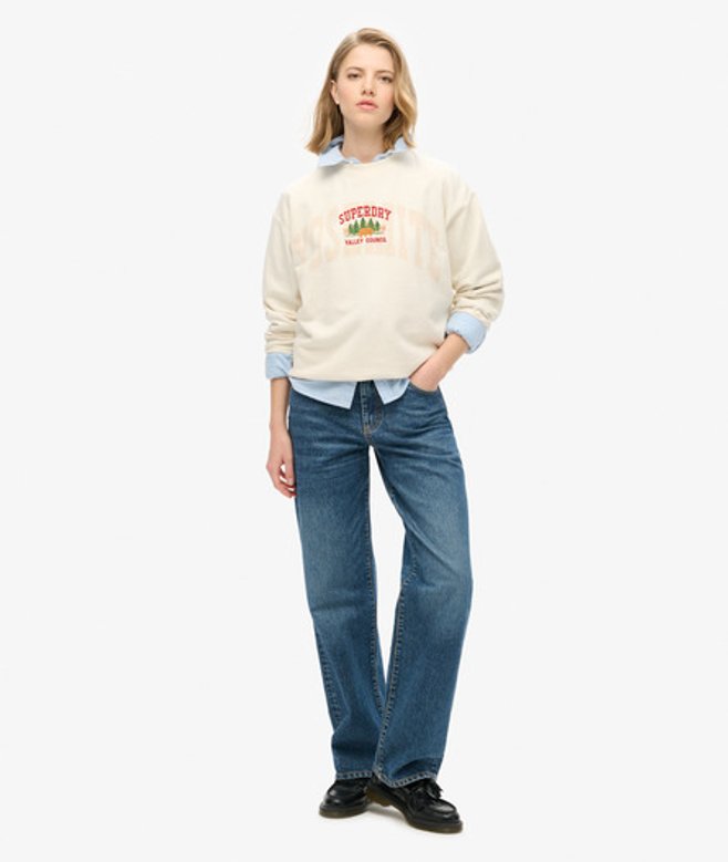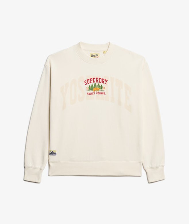 Superdry Travel Souvenir Sweatshirt met Ronde Hals en Losse Pasvorm Crème
