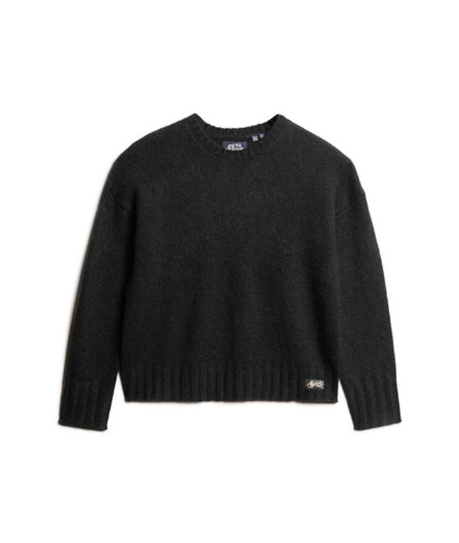 Kies je gebruikelijke maat Gebreide wolmix Ronde hals Geribde boorden en zoom Logolabel op de zoom