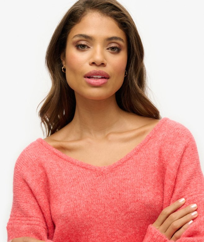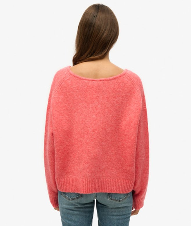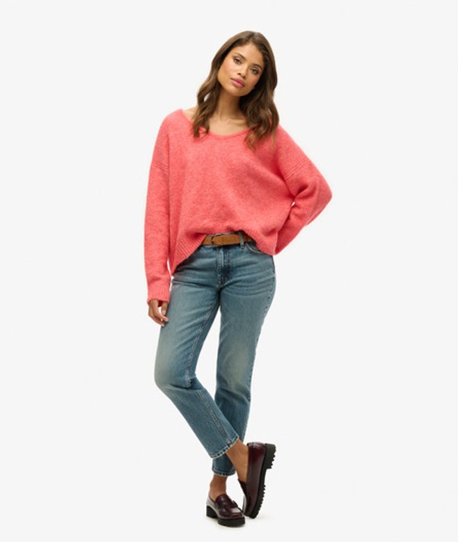Oversized pasvorm - extra ruim en superrelaxed, laat je stijl de vrije loop V-hals Geribde boorden en zoom Verlaagde schouderinzet Kenmerkend Superdry-label