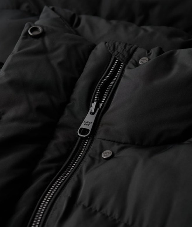 Door de wattering blijf je warm en comfortabel, hoe je hem ook draagt. Oversized pasvorm - extra ruim en superrelaxed, geeft je stijl alle ruimte UK10 schouder tot zoom: 110 cm Duurzaam waterafstotend materiaal - Deze stof heeft een geavanceerde waterbestendige coating Lang ontwerp Volledig gewatteerd Ritssluiting met drukknoopsluiting Twee buitenzakken met drukknoopsluiting Zijnaden met drukknopen Superdry-label in de achterkant genaaid