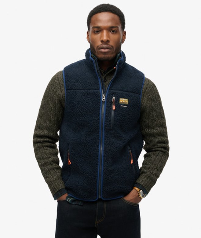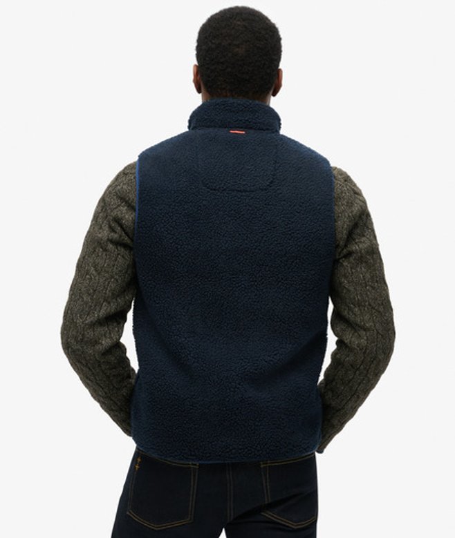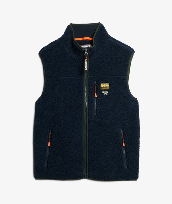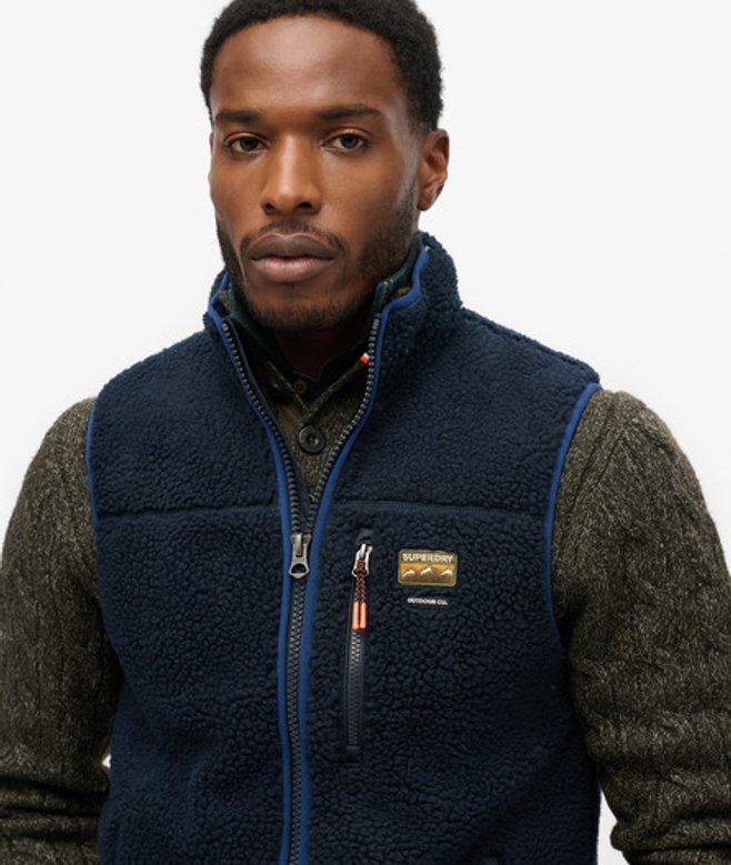 Kies je gebruikelijke maat Ritssluiting Drie voorzakken met rits All-over borg Contrasterende biezen Subtiel geborduurd logo op de borst De outdoor bodywarmer van fleece is een klassieker die superieur comfort biedt, terwijl hij toch praktisch is dankzij het mouwloze ontwerp.