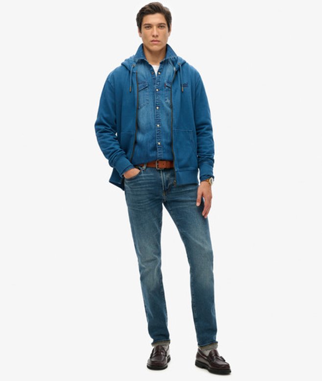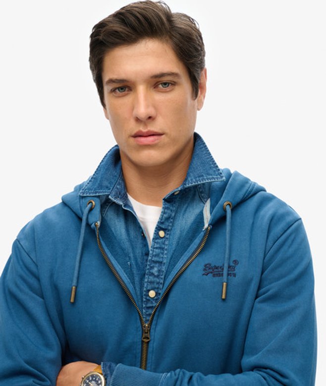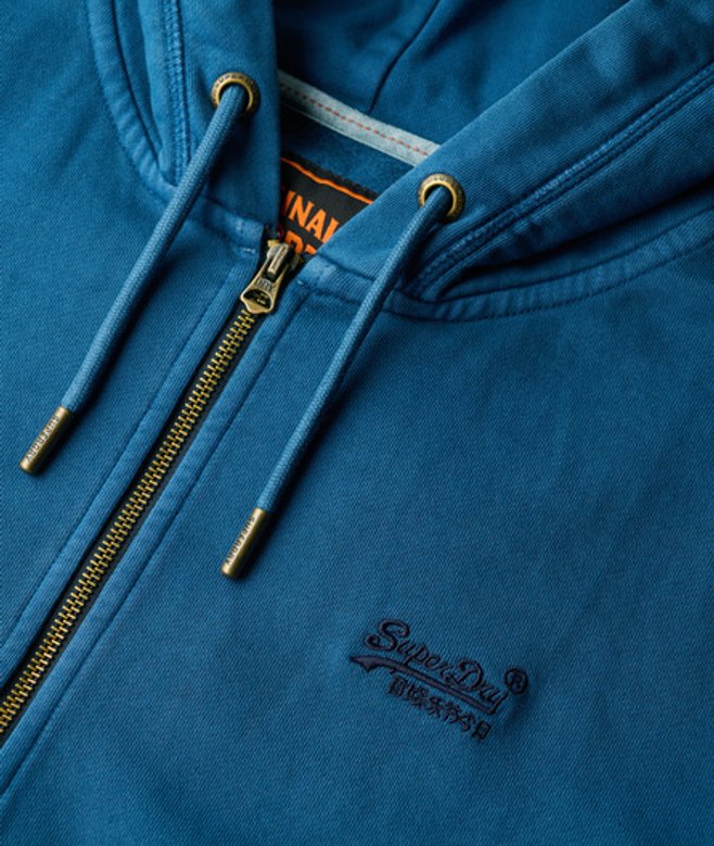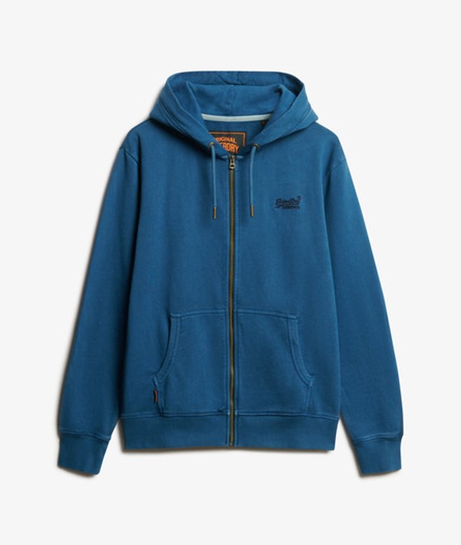 Superdry Essential Logo Washed Hoodie met Rits Blauw