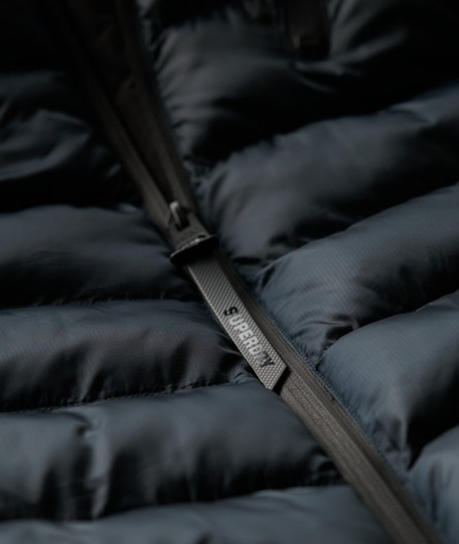 Deze jas met wattering in het hoofdgedeelte en een gladde stof op de mouwen tilt je stijl naar een hoger niveau en houdt je heerlijk warm, wat het weer ook voor je in petto heeft. Slimfit - de nauw aansluitende pasvorm zorgt voor een getailleerd silhouet Volledige rits 4 buitenzakken Eén binnenzak van mesh Licht geborstelde voering aan de binnenkant Gewatteerde body en capuchon Verstelbare capuchon met elastisch koord Elastische mouwboorden Geborduurd Superdry-stiksel Ingestikt Superdry-logo op de mouw