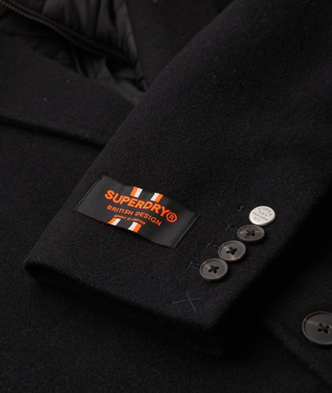 Slimfit - de nauw aansluitende pasvorm zorgt voor een getailleerd figuur Rits- en knoopsluiting Hoge kraag met tweede kraag met geribde voering Manchetten met knoopsluiting Doorgestikte voering Kenmerkend label achter op de kraag en mouw Metalen label op de mouw