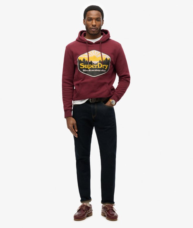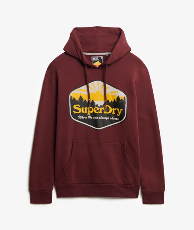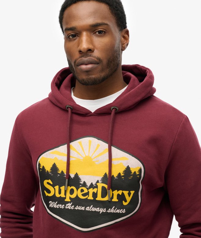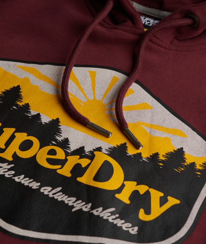 Kies je gebruikelijke maat Capuchon met trekkoord Geribde boorden en zoom Grote voorzak Opgedrukte afbeelding op de borst Logolabel op zoom De Superdry Sun Tab-hoodie is vakkundig gemaakt met een behaaglijke geborstelde voering en een opvallende afbeelding op de borst - een absolute must-have voor comfortliefhebbers.