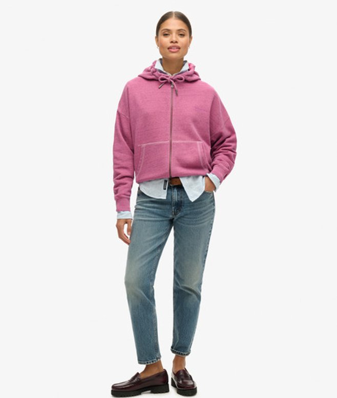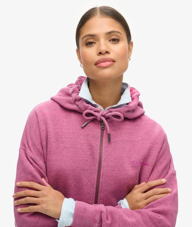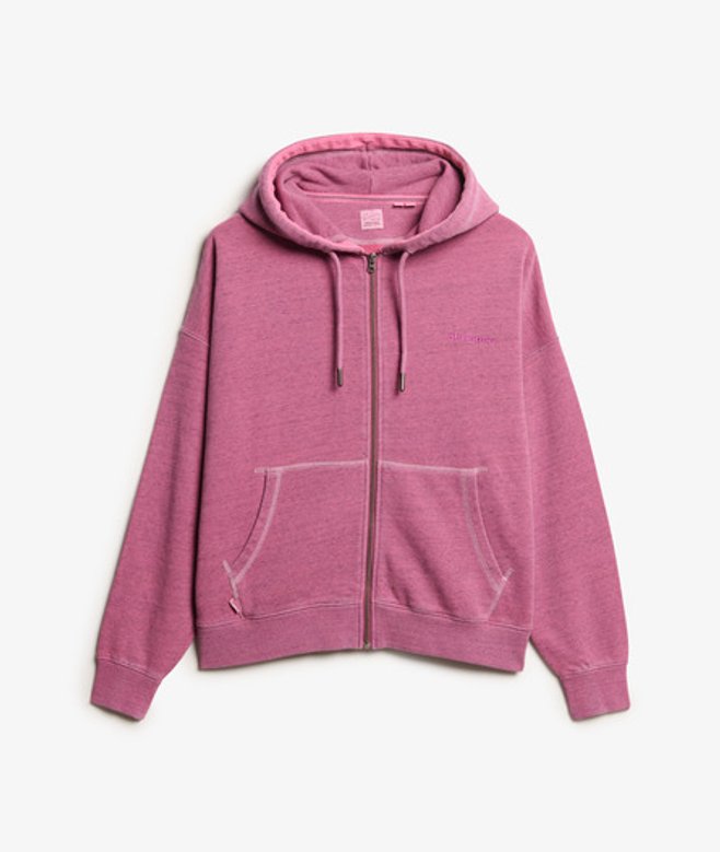 Superdry Essential Logo Overdyed Hoodie met Rits Roze