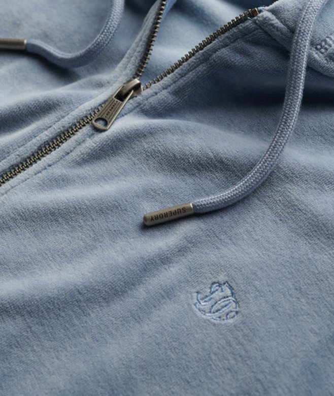 In de velours hoodie met rits herken je meteen het kenmerkende comfort en de luxe stijl van Superdry.