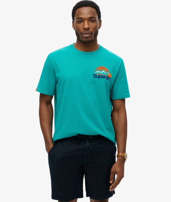 Superdry Great Outdoors T-shirt met Core Logo op de Borst Turkoois