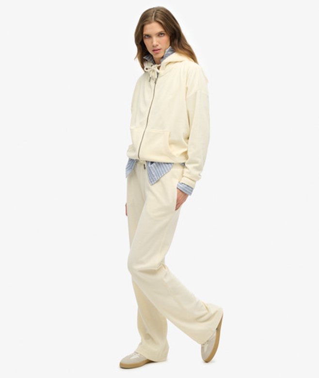 Superdry Velours Joggingbroek met Wijde Pijpen Wit