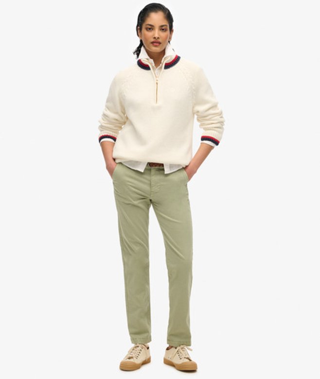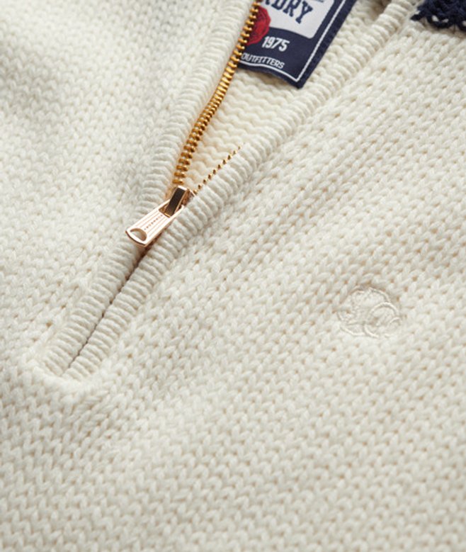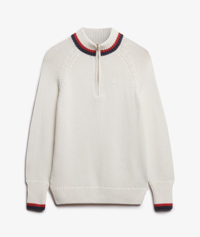 Kies je gebruikelijke maat Halve ritssluiting en geribde, contrasterende boorden Raglanmouwen De Tipped-trui met halve rits is een stijlvol kledingstuk dat er moeiteloos in slaagt om je herfstlooks naar een hoger niveau te tillen.