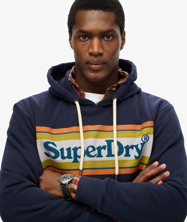 Superdry Gestreepte Relaxte Hoodie met Venue-logo Blauw