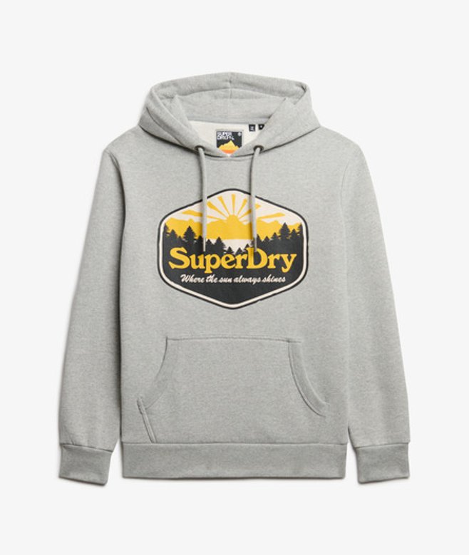 Kies je gebruikelijke maat Capuchon met trekkoord Geribde boorden en zoom Grote voorzak Opgedrukte afbeelding op de borst Logolabel op zoom De Superdry Sun Tab-hoodie is vakkundig gemaakt met een behaaglijke geborstelde voering en een opvallende afbeelding op de borst - een absolute must-have voor comfortliefhebbers.