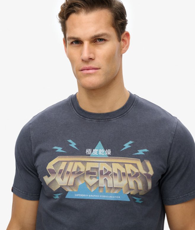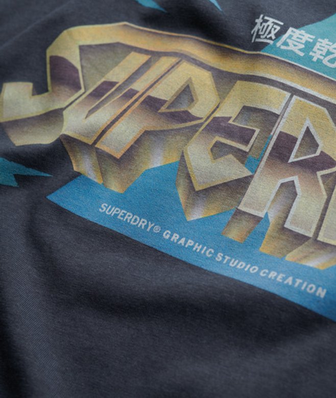 Superdry Rock Band Logo T-shirt met Relaxte Pasvorm Donkergrijs
