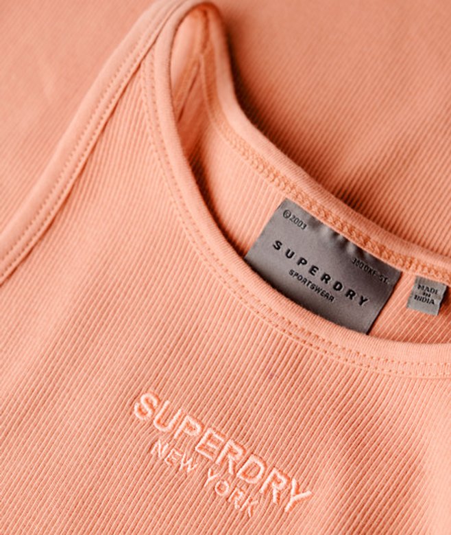 Slimfit - de nauw aansluitende pasvorm zorgt voor een getailleerd silhouet Laag uitgesneden hals Geribd materiaal Minilengte Geborduurd Superdry-logo