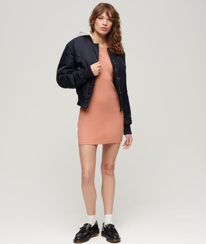 Superdry Rib Racer Jurk met Borduursels Bruin | ricciano NEDERLAND
