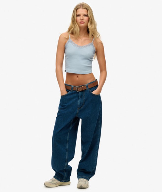 VK 6-8, VS 2-4, EU 34-36 VK 10-12, VS 6-8, EU 38-40 VK 14-16, VS 10-12, EU 42-44 Slimfit - de nauw aansluitende pasvorm zorgt voor een getailleerd silhouet Zacht geribd materiaal in een iets kortere lengte V-hals met kanten rand en verstelbare spaghettibandjes Geef je basics dit seizoen een flinke boost met het korte Athletic Essentials camitopje met kanten rand.