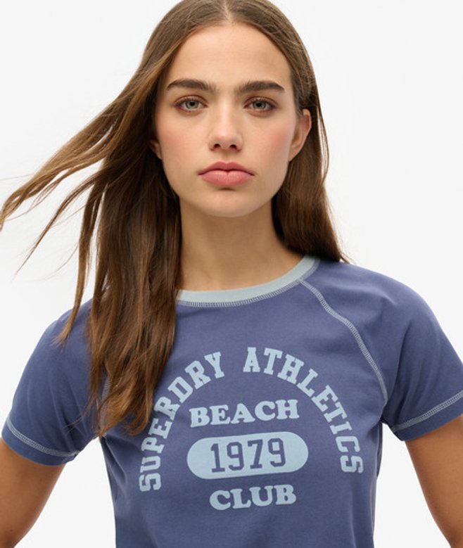 Superdry Athletic T-shirt met Raglanmouwen en Print Blauw
