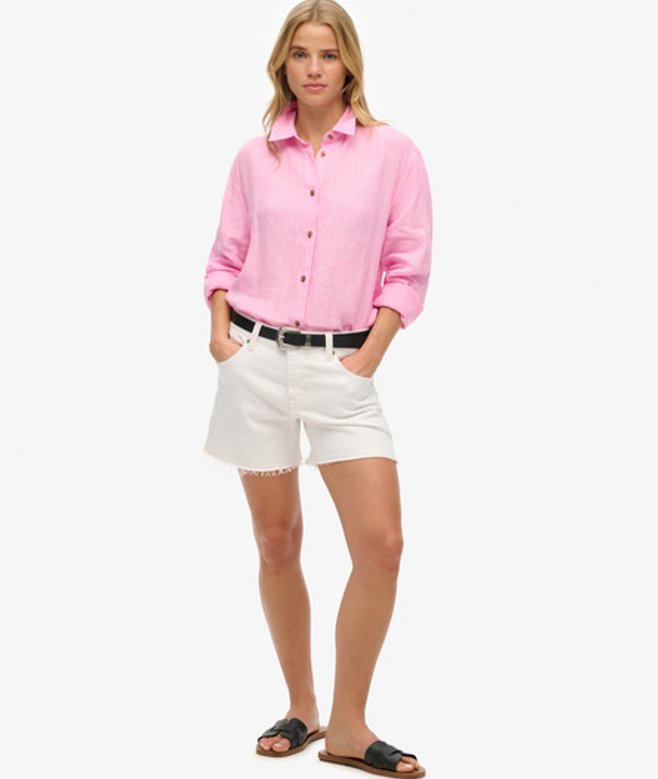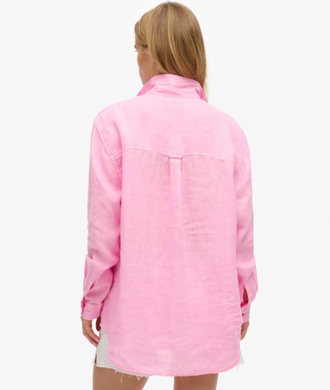 Superdry Casual Boyfriend Overhemd van Linnen Roze