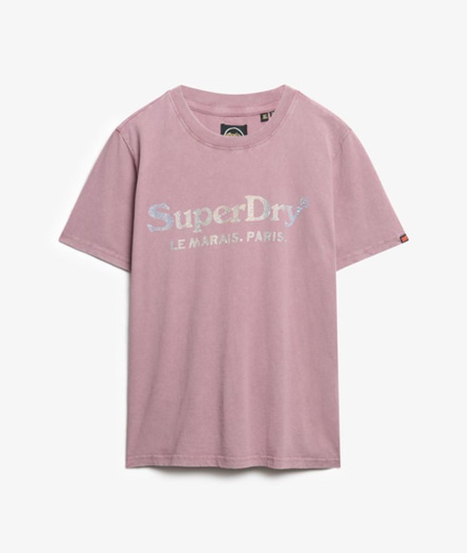 Superdry Venue Metallic T-shirt met Relaxte Pasvorm Paars