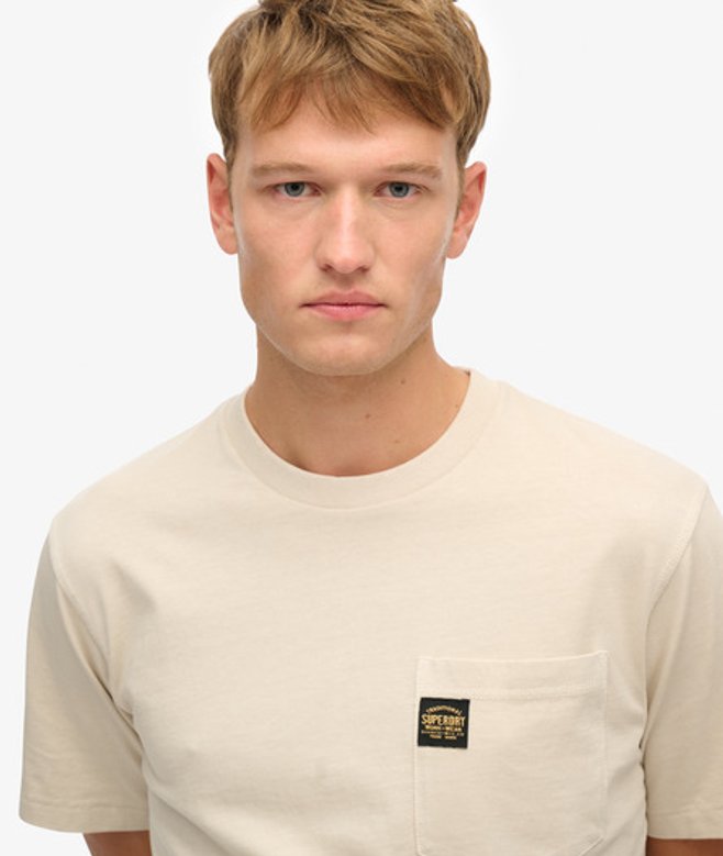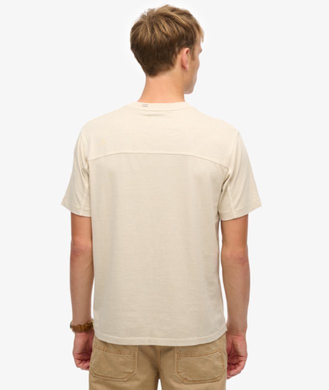 Superdry T-shirt met Borstzak en Contrasterend Stiksel Beige