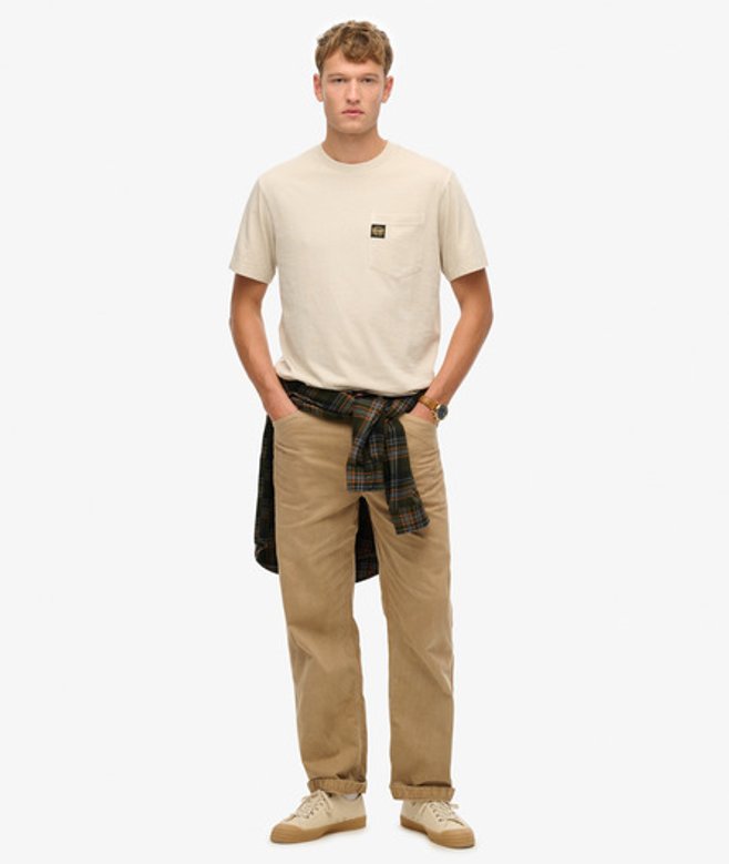 Hoe dan ook, we weten zeker dat je er de hele dag comfortabel en trendy bij loopt. Losse pasvorm - de stijlvolle losse pasvorm maakt dit tot een must-have waarin comfortabel en cool samenkomen Korte mouwen tot op de biceps Ronde hals Geribde halslijn Borstzak Superdry-label op het zakje genaaid