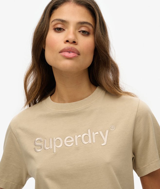 Superdry Core Boxy T-shirt met Losse Pasvorm en Borduursel Beige