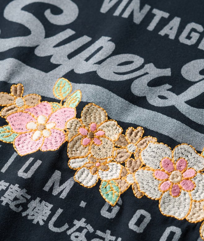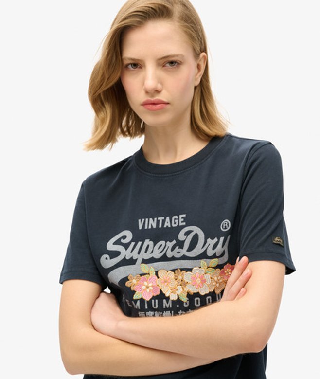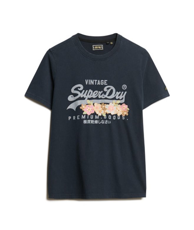 Superdry Premium Goods T-shirt met Bloemenprint en Vintage Logo Blauw