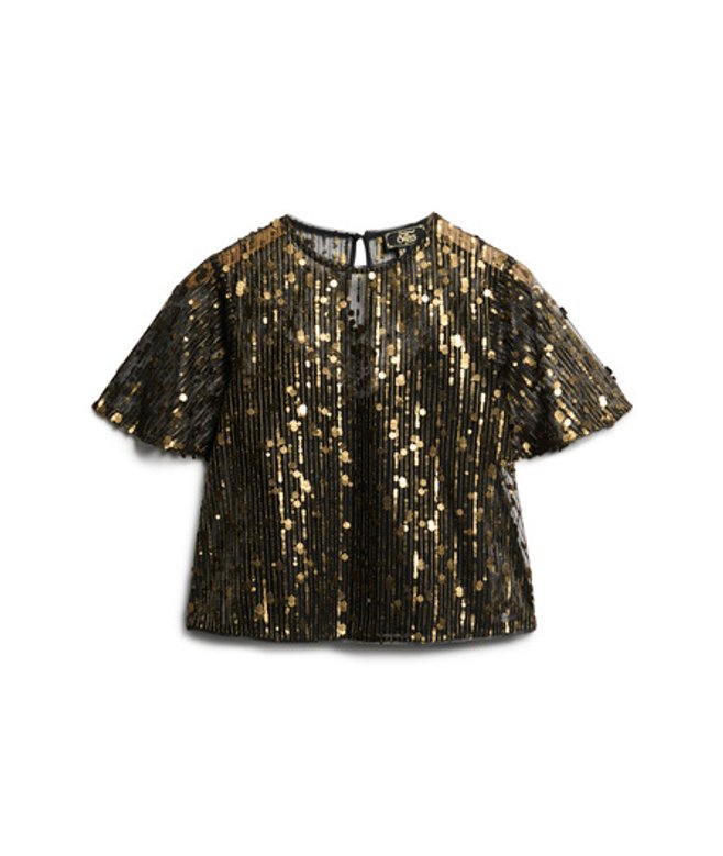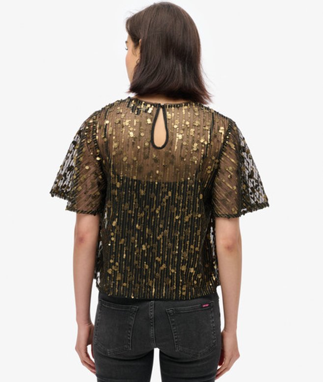 Superdry Transparante top met Pailletten en Korte Mouwen Goud | ricciano NEDERLAND
