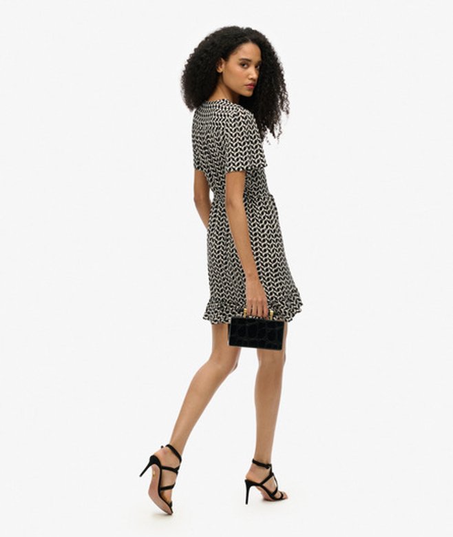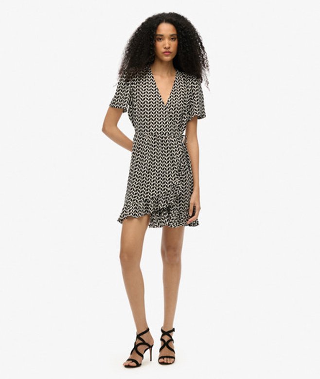 Superdry Mini-wikkeljurk met Print en Korte Mouwen Zwart