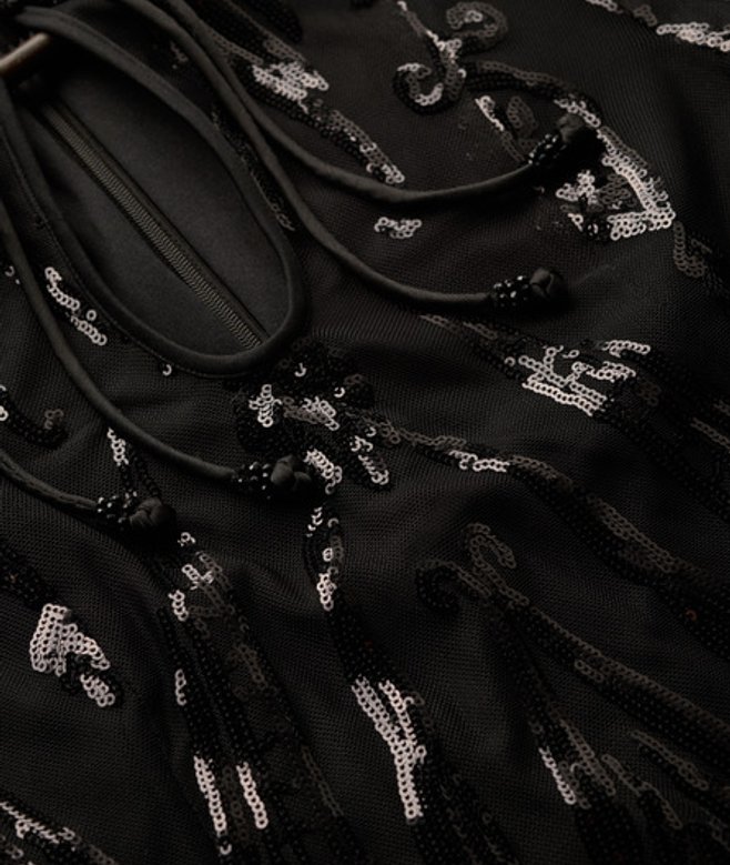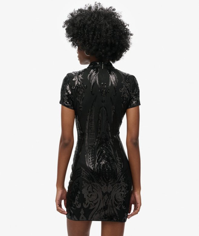 Superdry Mini-jurk met Mandarijnkraag en Pailletten Zwart