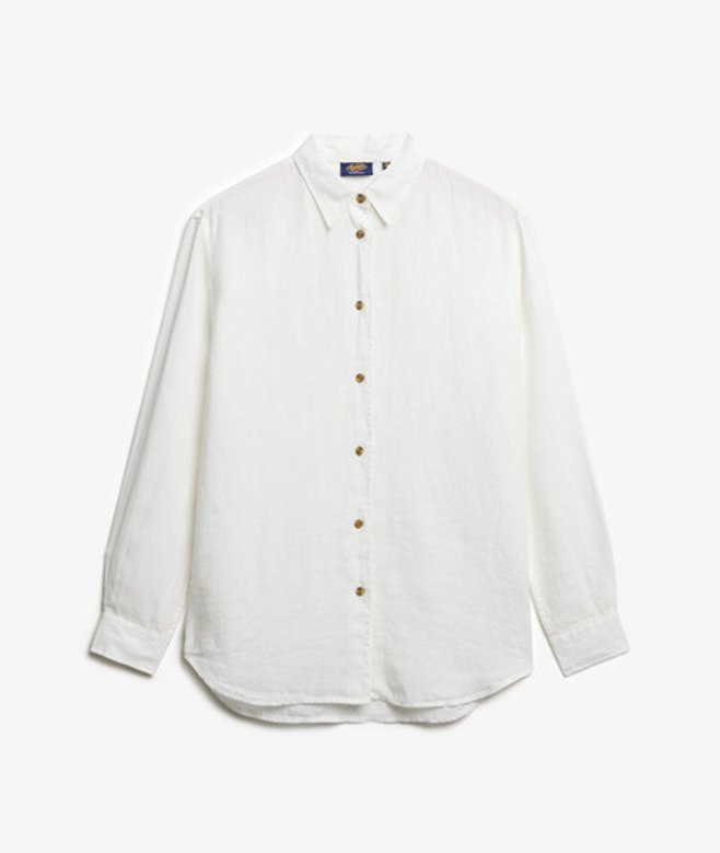 Losse pasvorm - cool en comfortabel komen samen in een stijlvol los ontwerp dat je gewoon moet hebben Lange mouwen en een enkele kraag Button-down en manchetten met knoopsluiting Kenmerkend metalen label op de zoom Ons casual boyfriend-overhemd van linnen heeft de perfecte alledaagse look voor al je plannen.