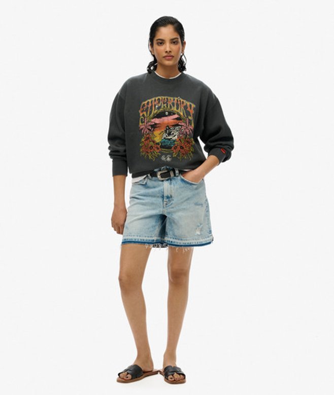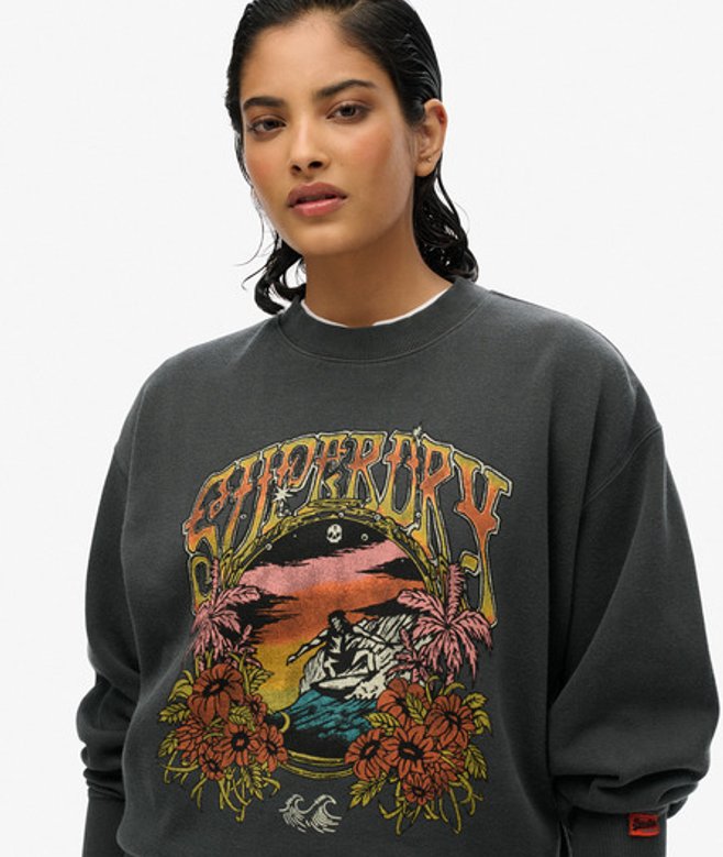 Superdry Psych Surf Loose Sweatshirt met Ronde Hals Zwart