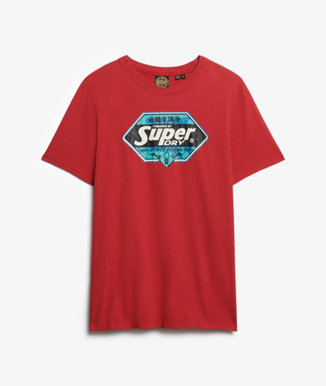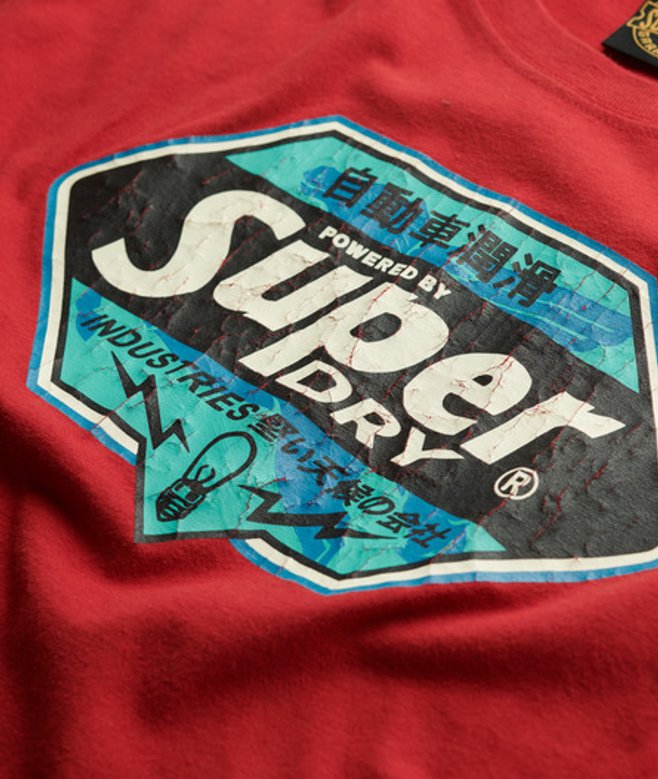 De comfortabele losse pasvorm geeft je die extra bewegingsvrijheid, terwijl de opvallende retro-afbeelding verwijst naar traditionele werkkleding, compleet met een verweerde afwerking voor een vintage, geleefde look.