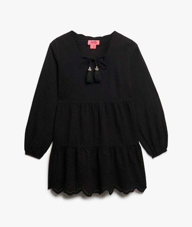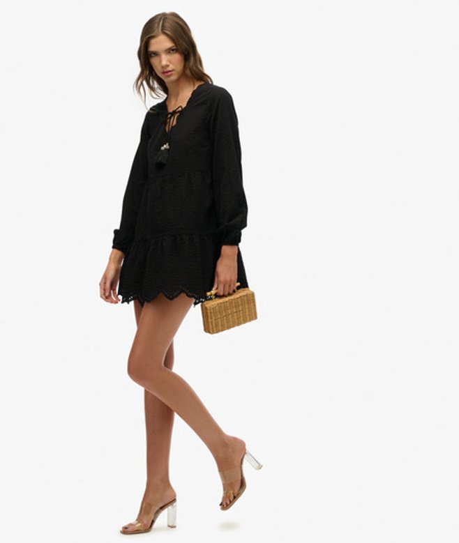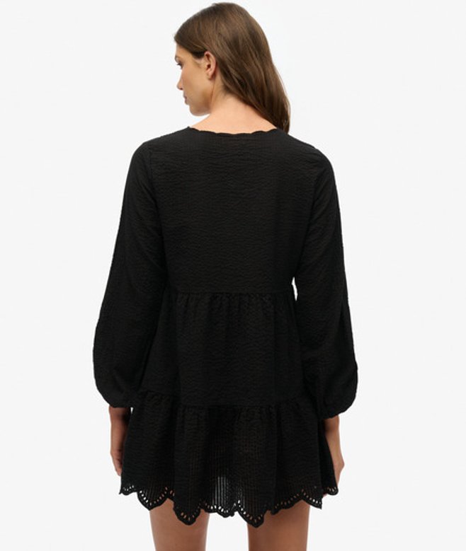 Superdry Gelaagde Mini-jurk van Broderiekant Black