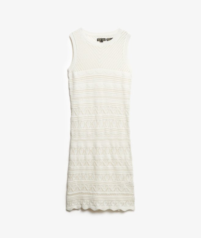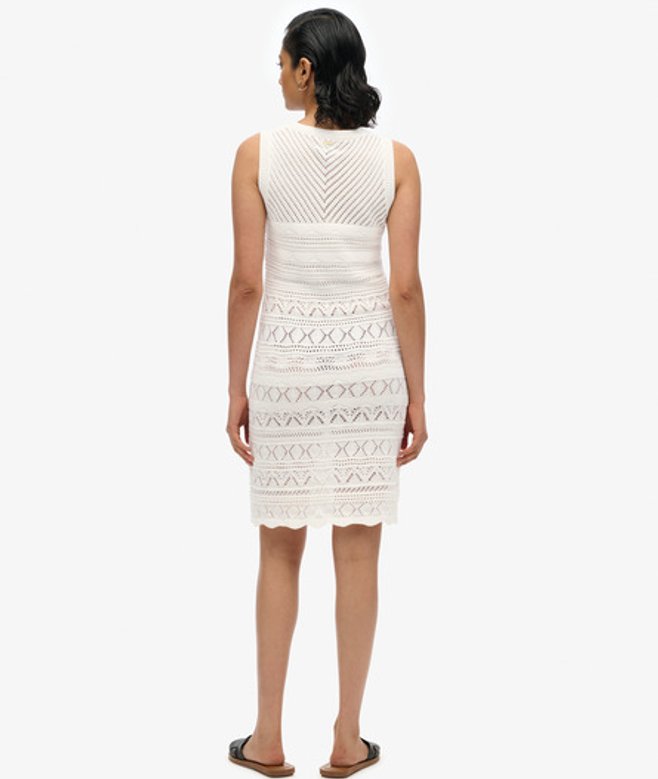 De gehaakte stof maakt de jurk stijlvol en moeiteloos.