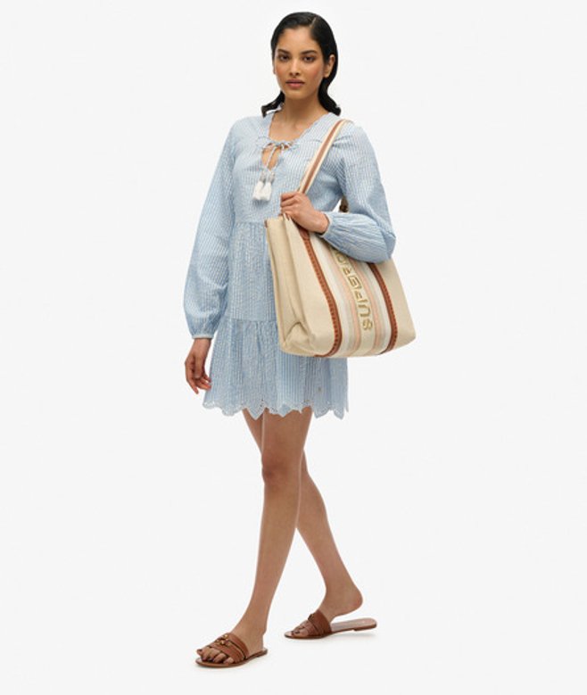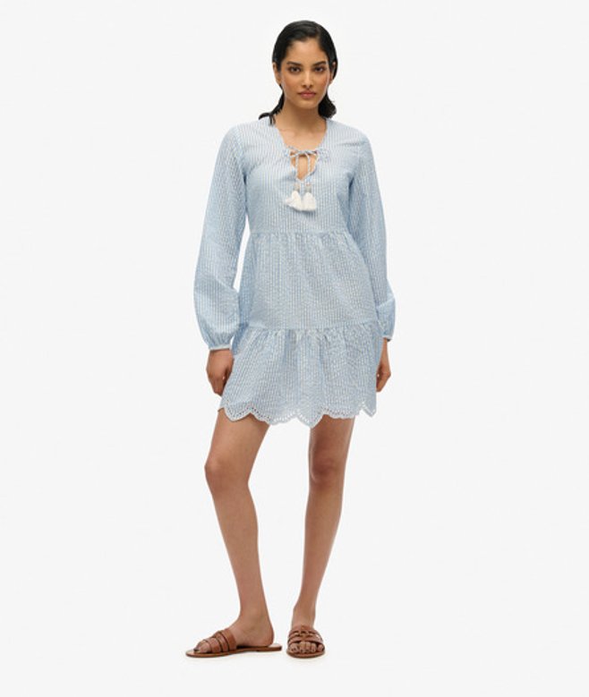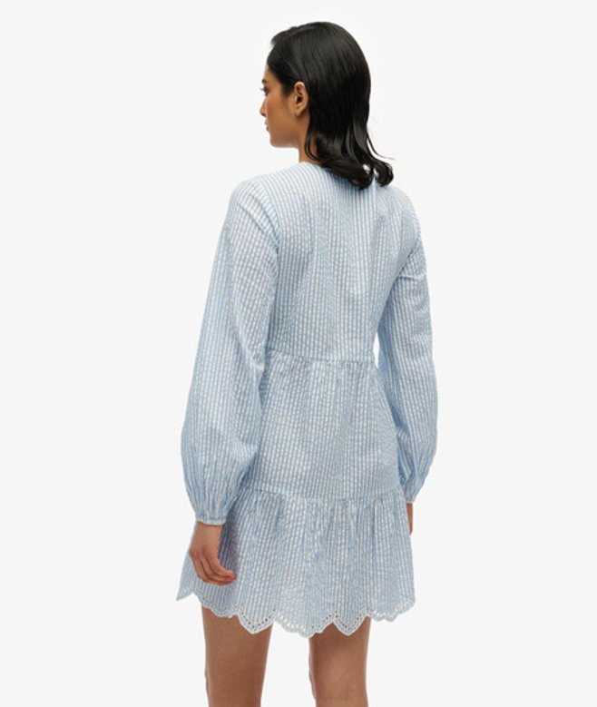 Superdry Gelaagde Mini-jurk van Broderiekant Light Blue