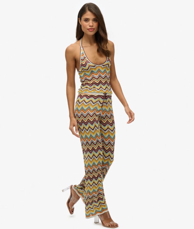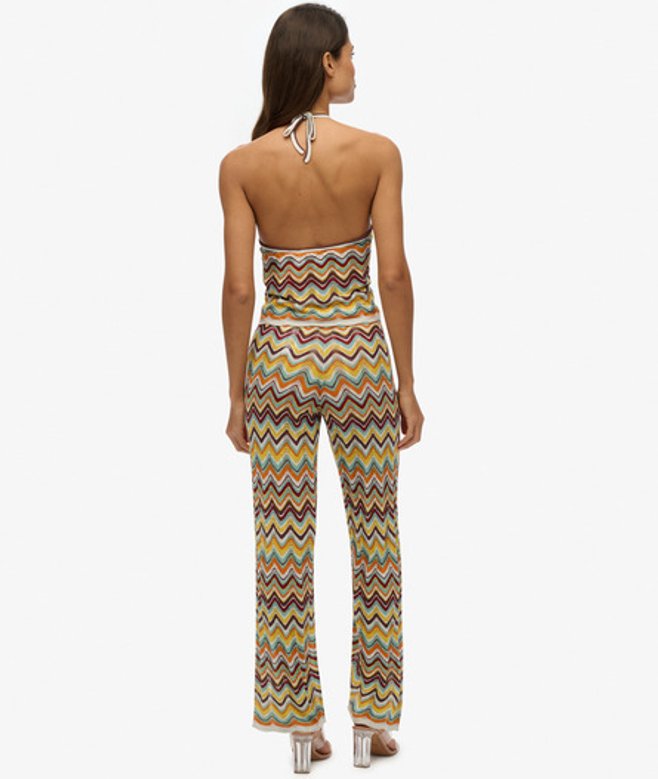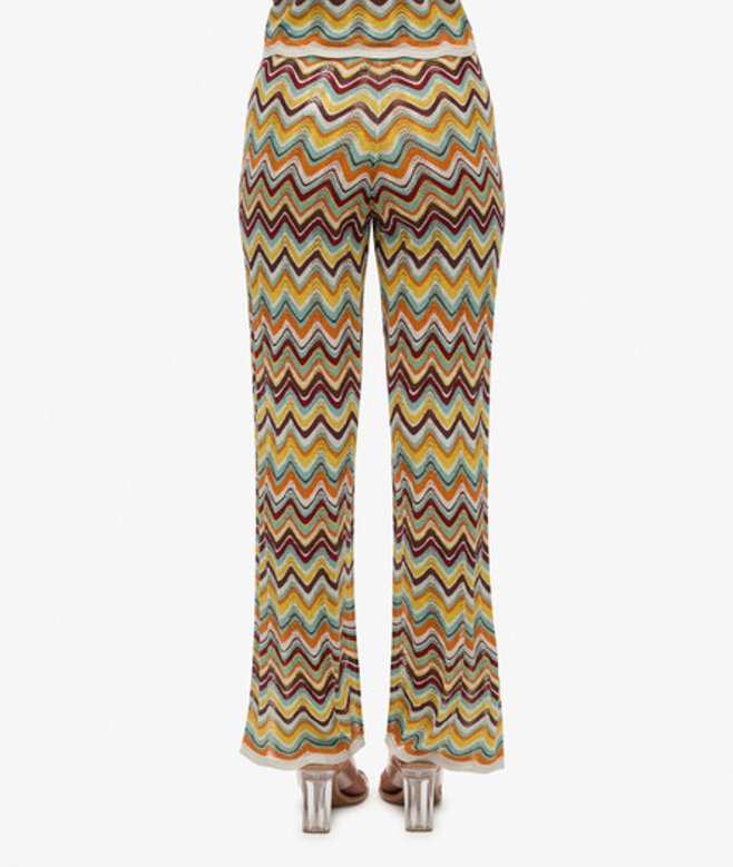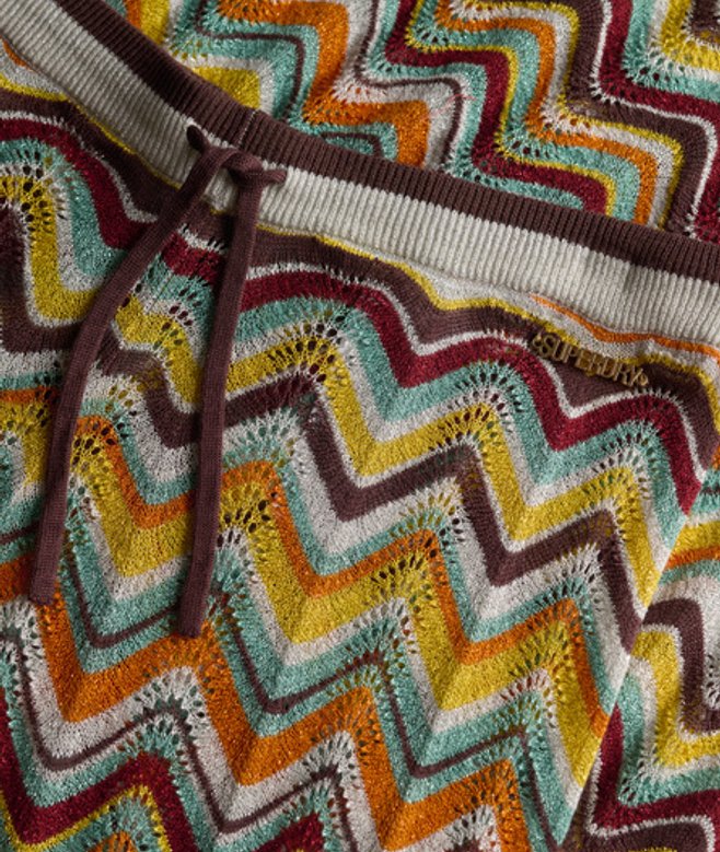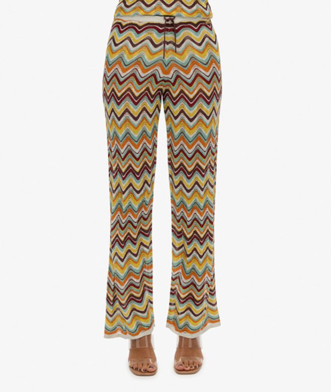 Elastische tailleband met verstelbaar trekkoord Ongevoerd met gehaakte details Kenmerkend metalen label op de tailleband De gebreide broek met wijde pijpen en zigzagpatroon biedt je de perfecte combinatie van stijl en comfort.