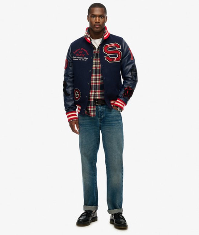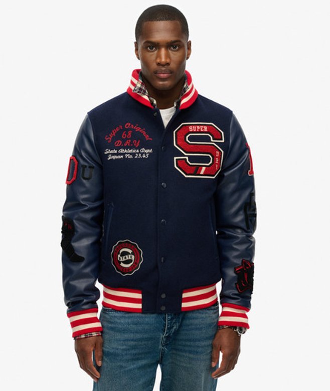 Superdry College Varsity Bomberjack met Patches Blauw