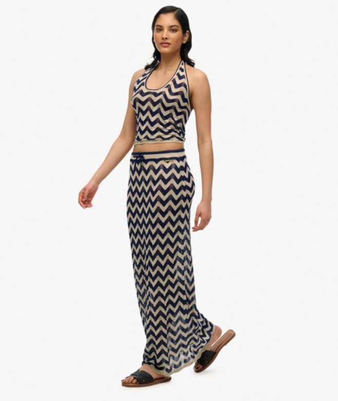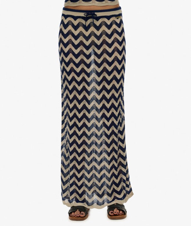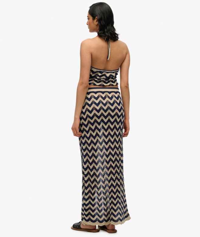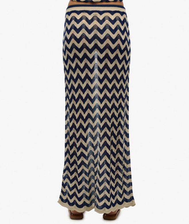 Superdry Gebreide Maxi-kokerrok met Zigzagpatroon Blauw